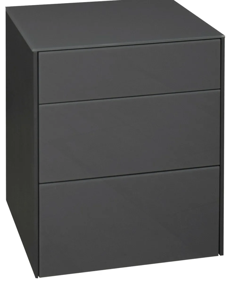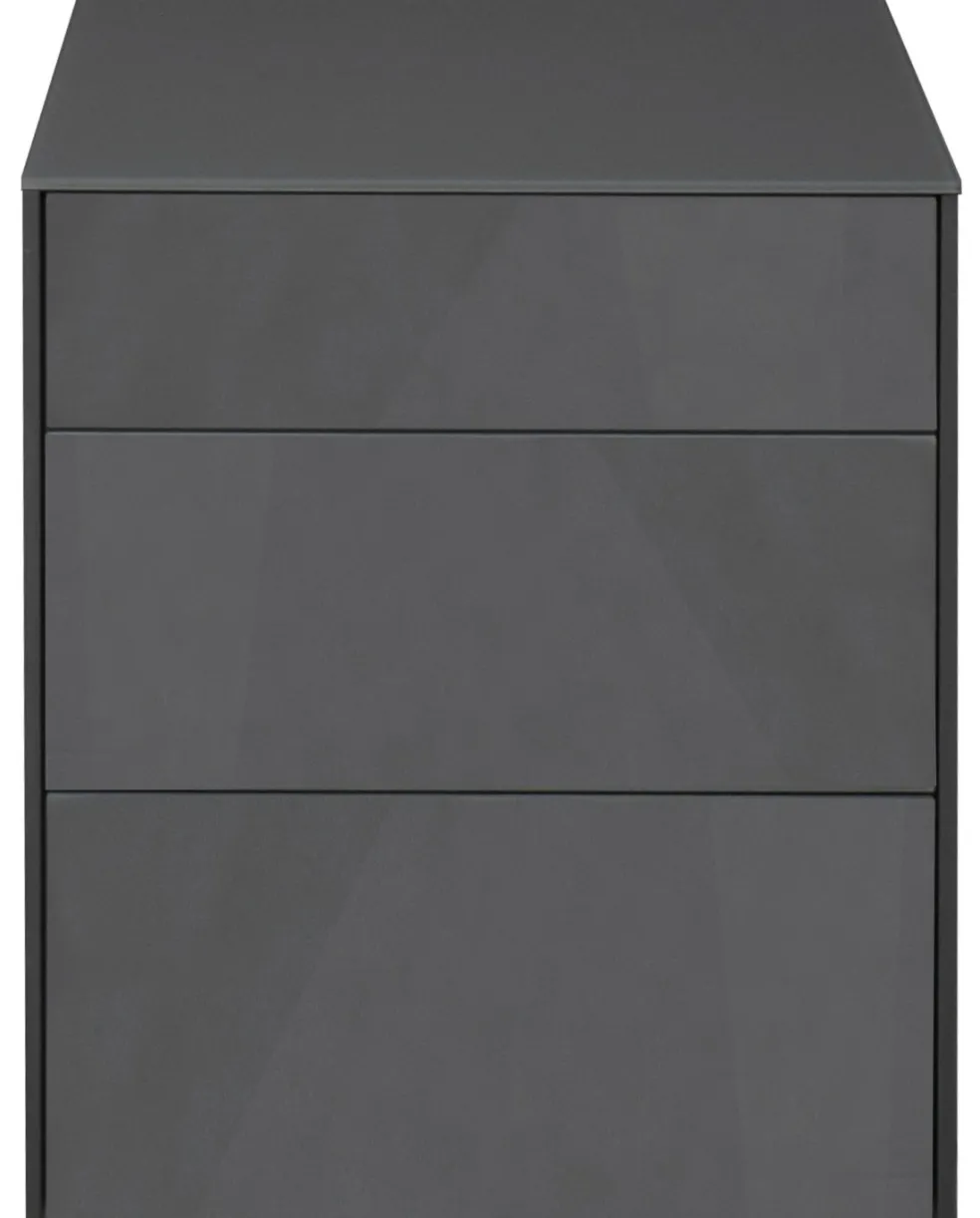 Façade et caisson: vernis anthracite mat / verre anthracite brillant