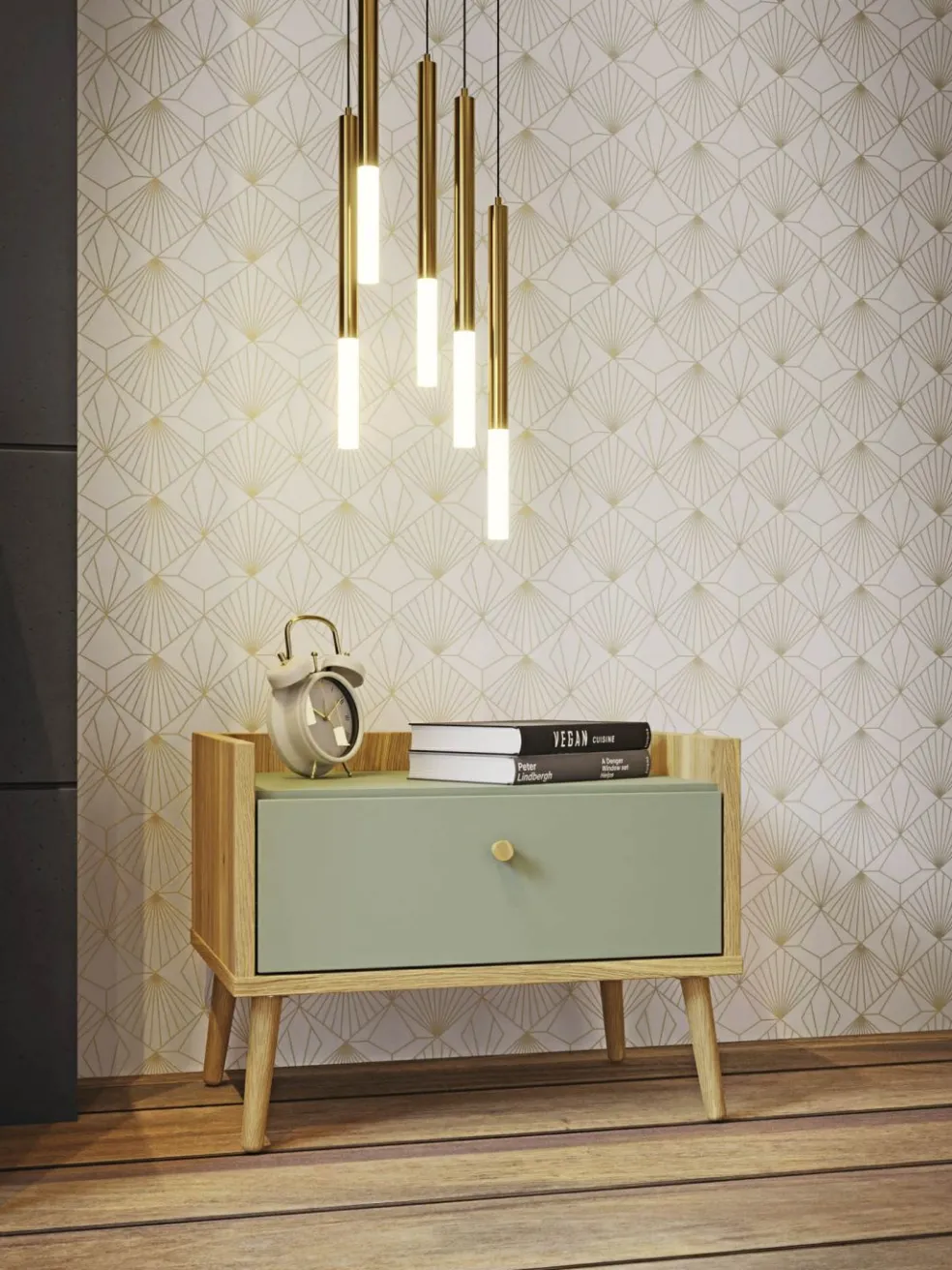 Façade: décor chêne Mauvella et ton sauge