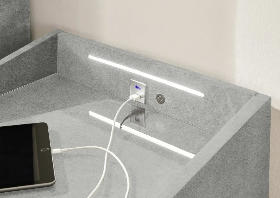 | Équipement Commodes Phono Bureau Étagère: | Plateau en verre, Tiroirs, avec port USB, incl. éclairage | ||