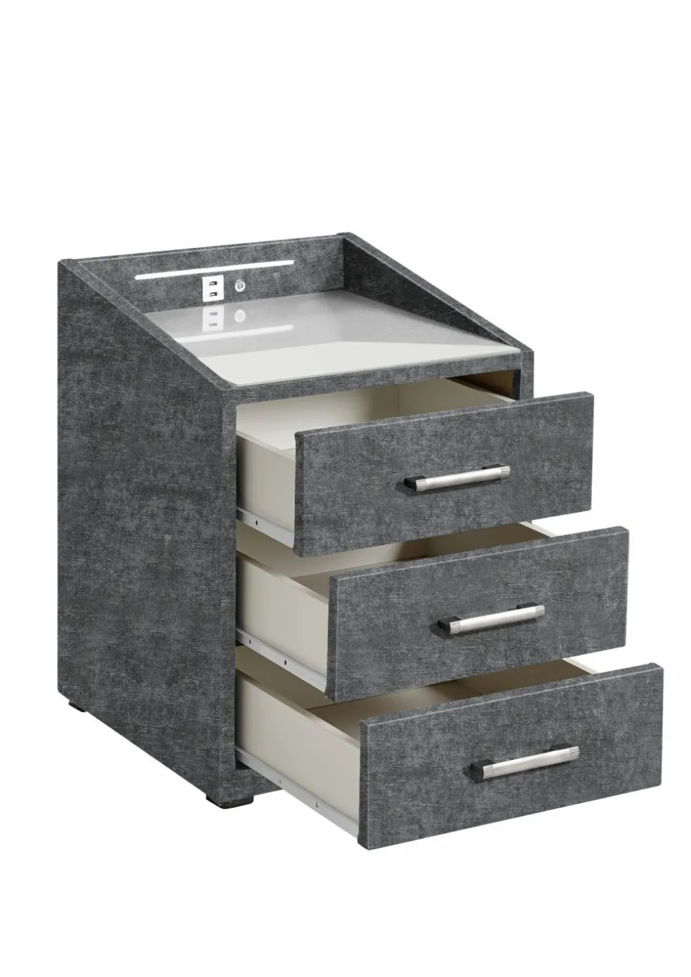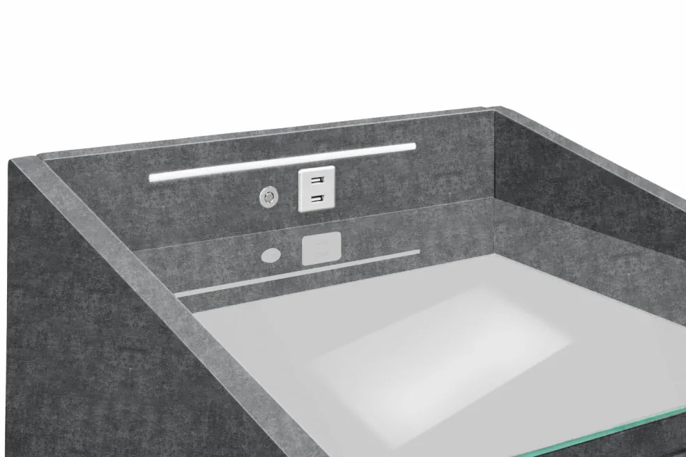 | Équipement Commodes Phono Bureau Étagère: | Plateau en verre, Tiroirs, avec port USB, incl. éclairage | ||