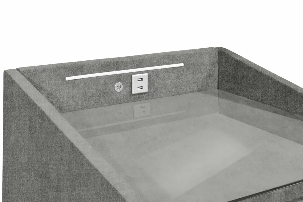 | Équipement Commodes Phono Bureau Étagère: | Plateau en verre, Tiroirs, avec port USB, incl. éclairage | ||