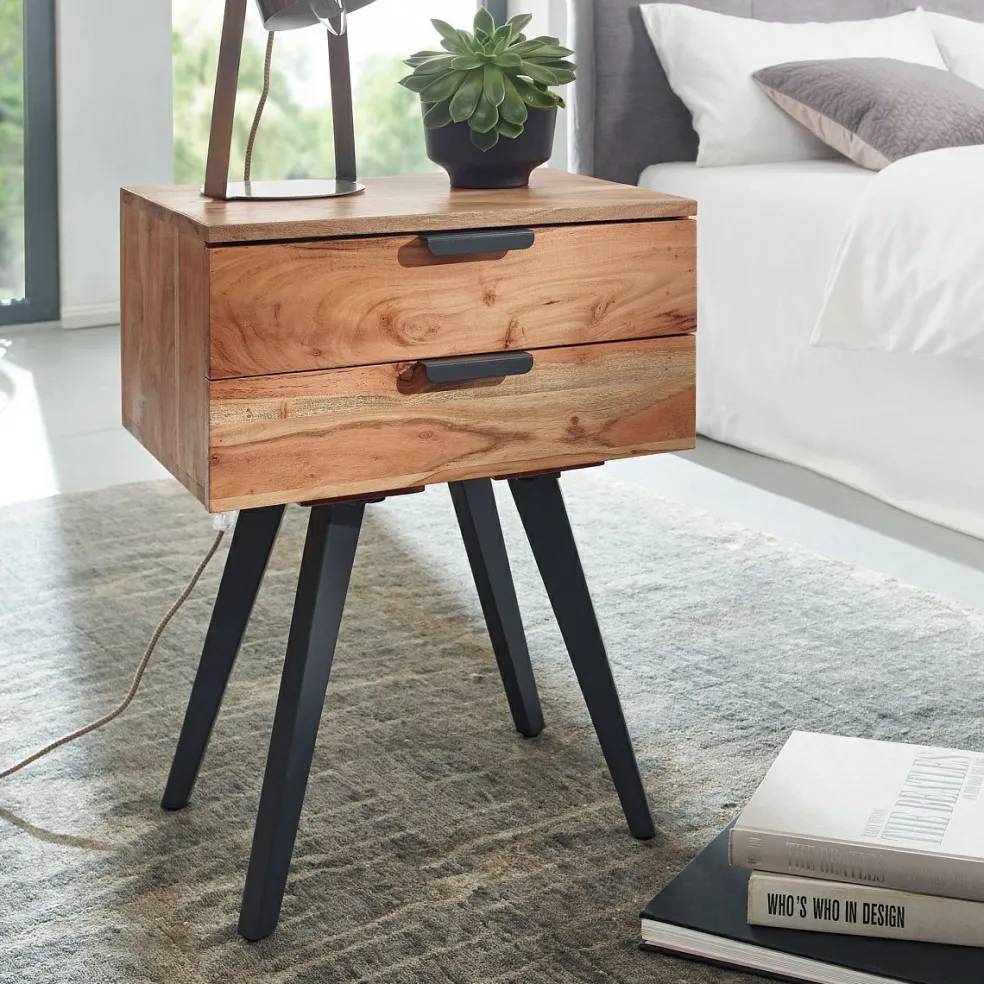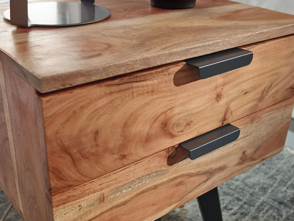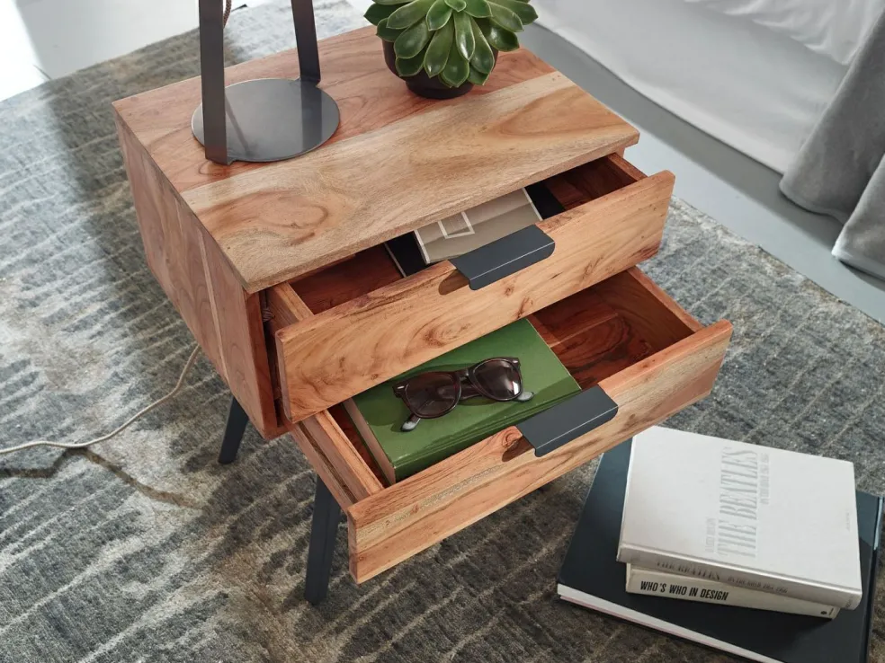 Caisson : acacia massif (Inde) avec couche de vernis transparent