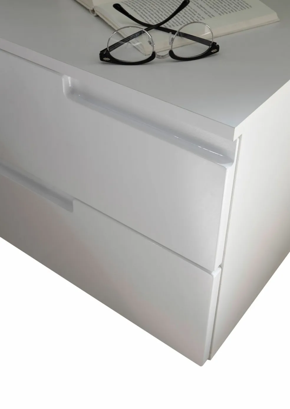 Façade : MDF (panneauxdefibres de boisde densitémoyenne) ton blanc ultra brillant thermoformé