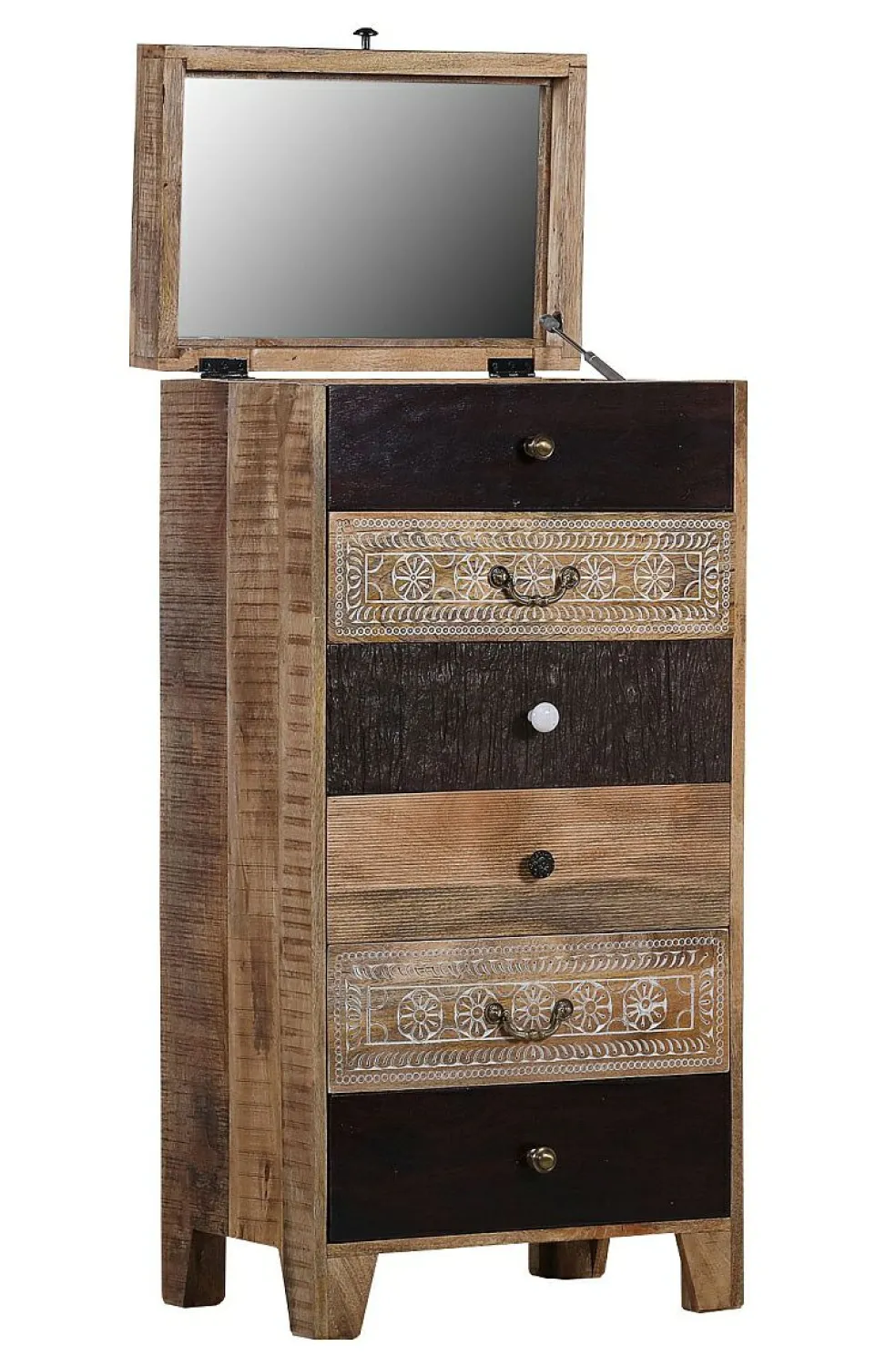 Façades : acacia massif (Inde), acacia massif avec gravures, MDF avec résine aspect bois vieilli