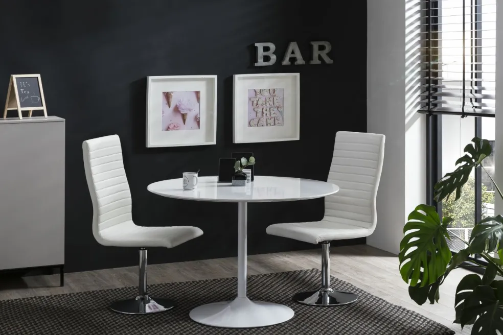 Plateau de table : MDF (panneaudefibresde bois dedensité moyenne) laqué ton blanc ultra brillant