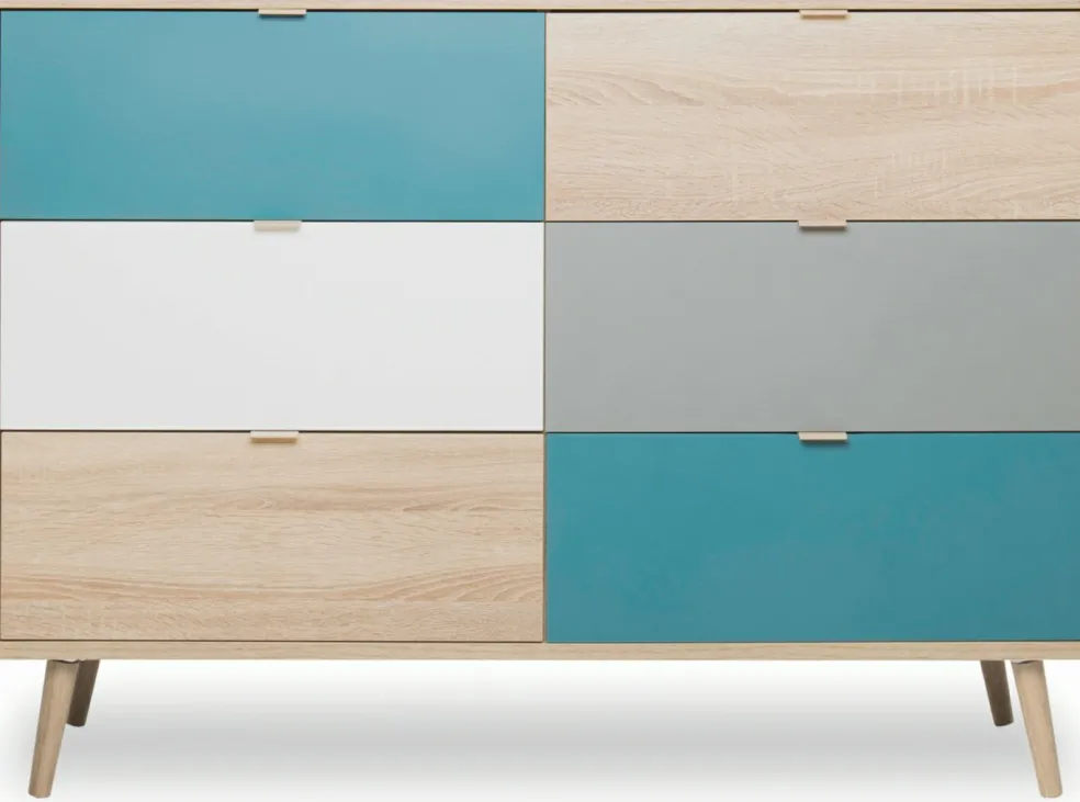 Façade : imitation chêne Sonoma / blanc / bleu pétrole / gris