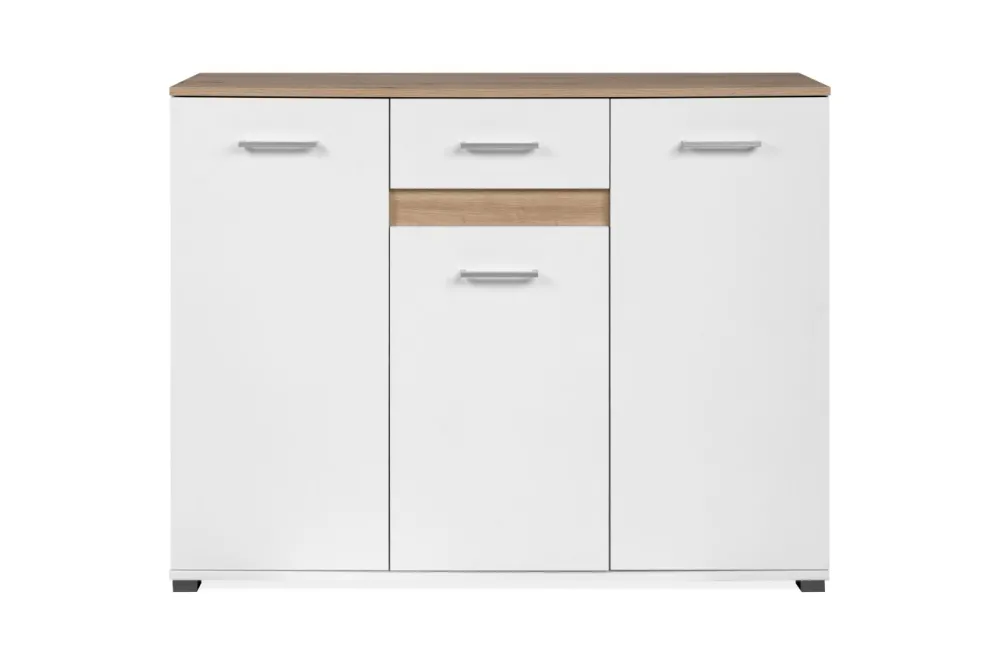 Blanc avec plateau supérieur et contrastes en imitation bois chêne Artisan