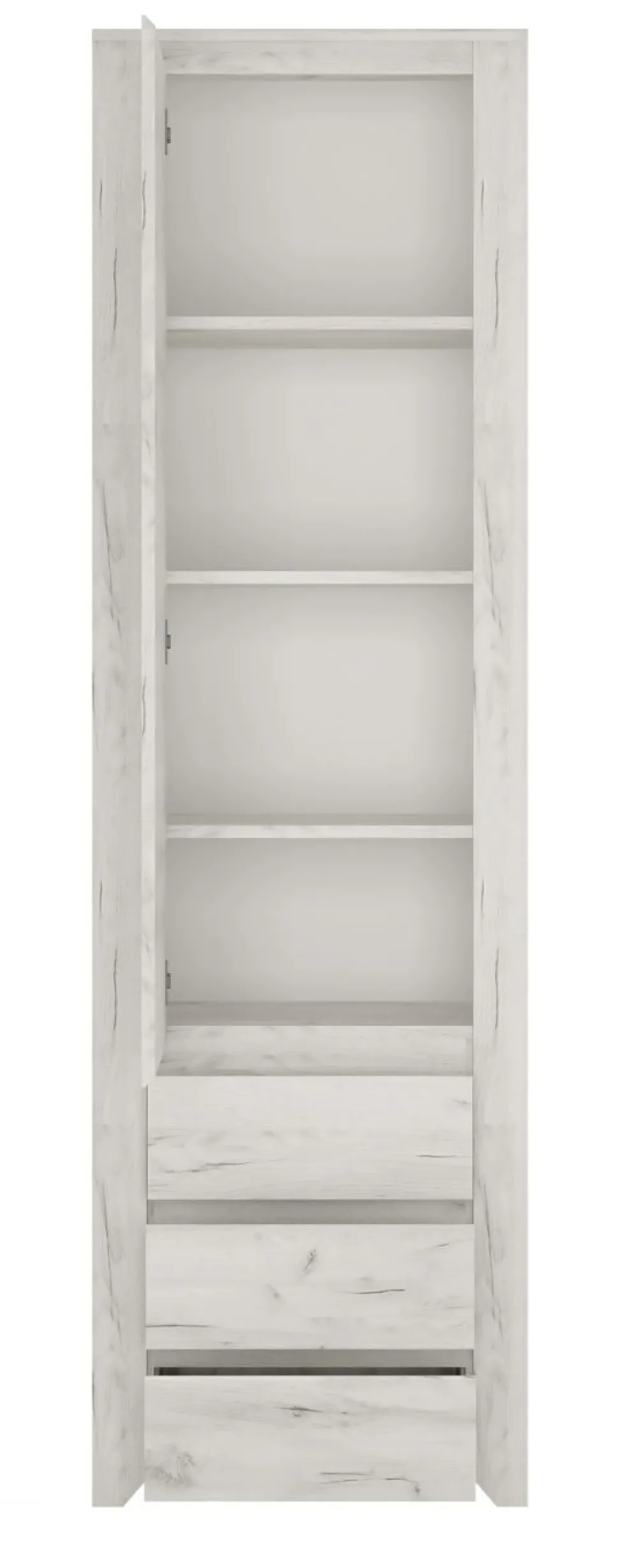 1 porte avec, derrière elle, 3 tablettes amovibles