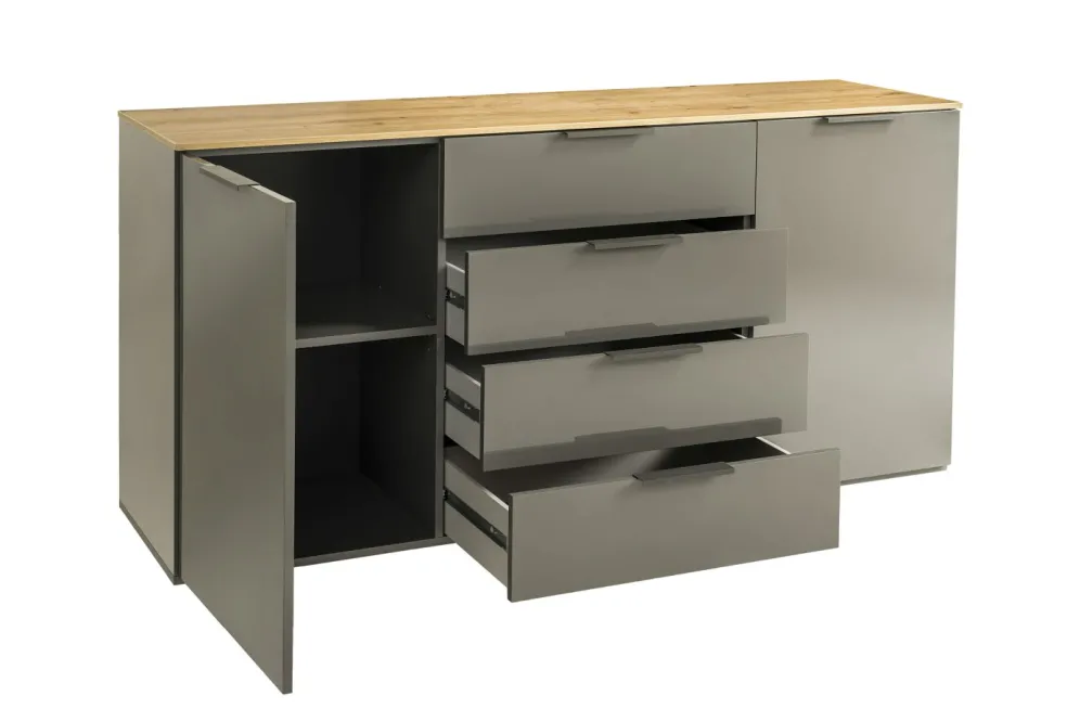 Caisson et façade: décor chêne Artisan et ton gris titane ultra brillant