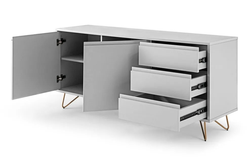 Caisson et façade : MDF (panneau de fibres de bois de densité moyenne) laqué ton blanc mat