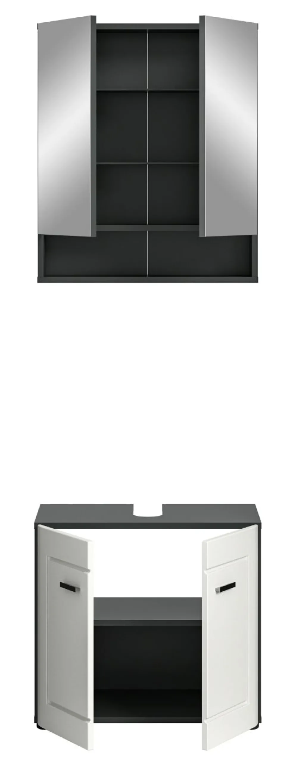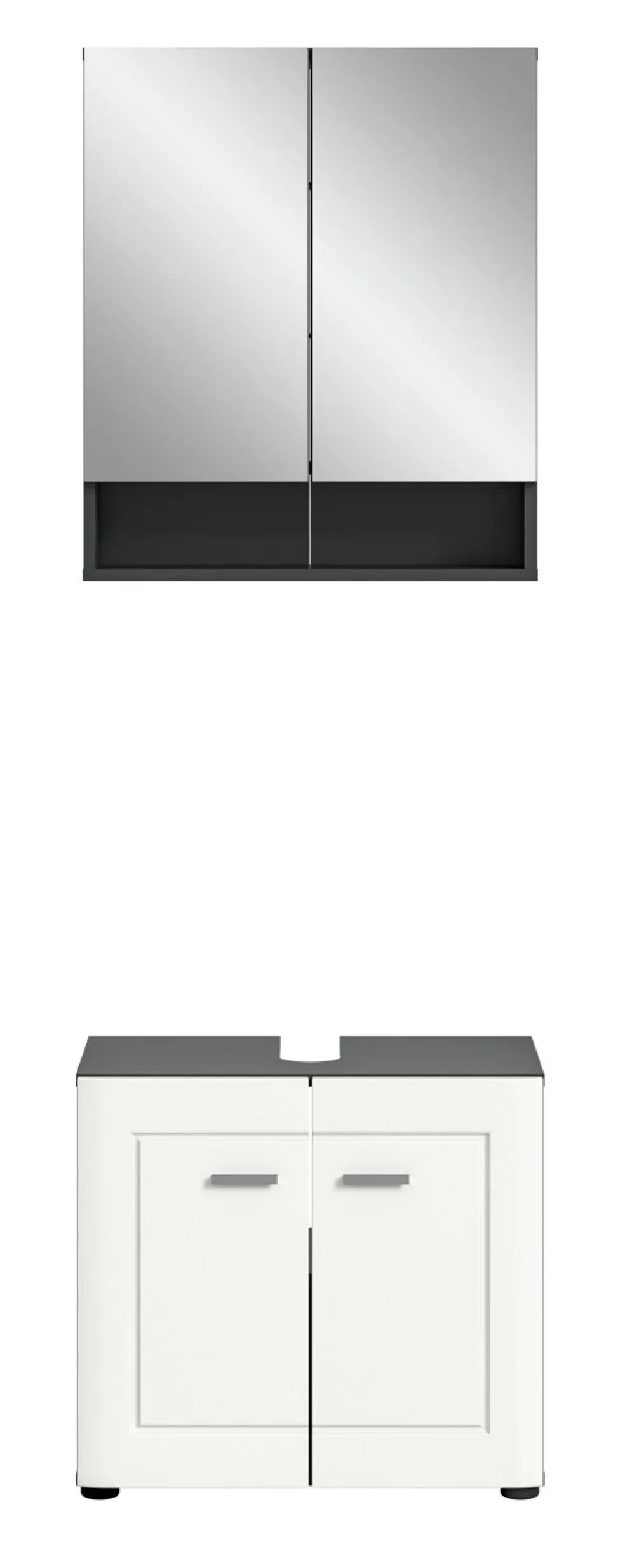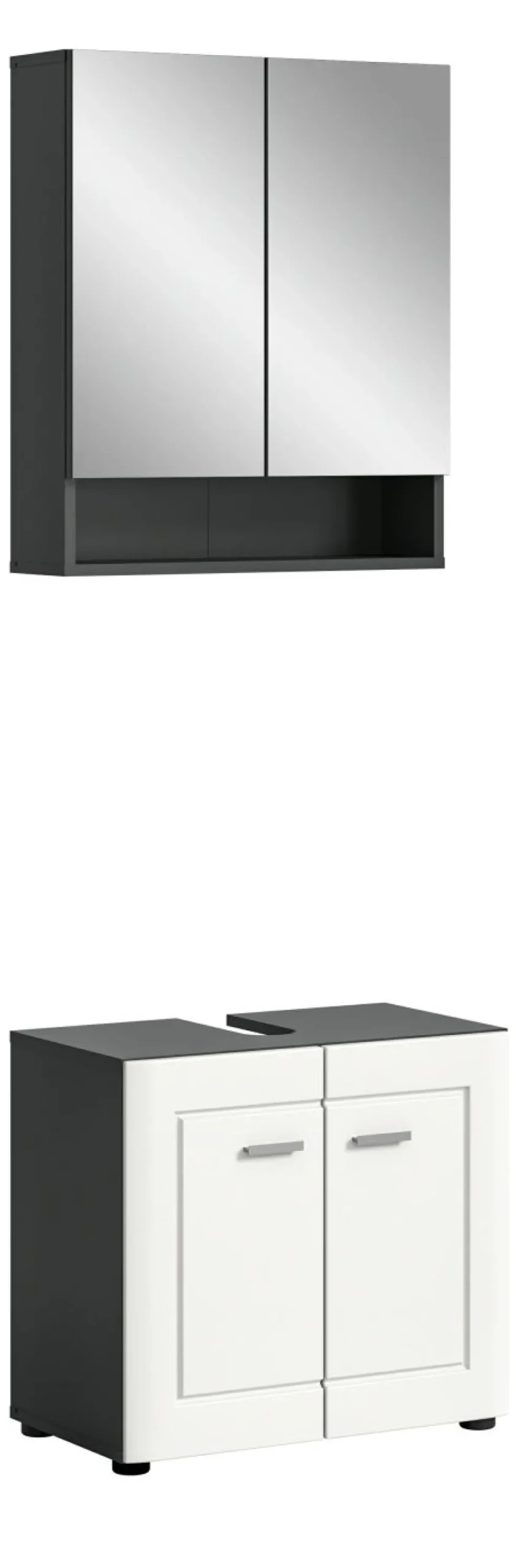 1 armoire de toilette avec 2 portes miroir, 2 tablettes amovibles et 1 casier ouvert