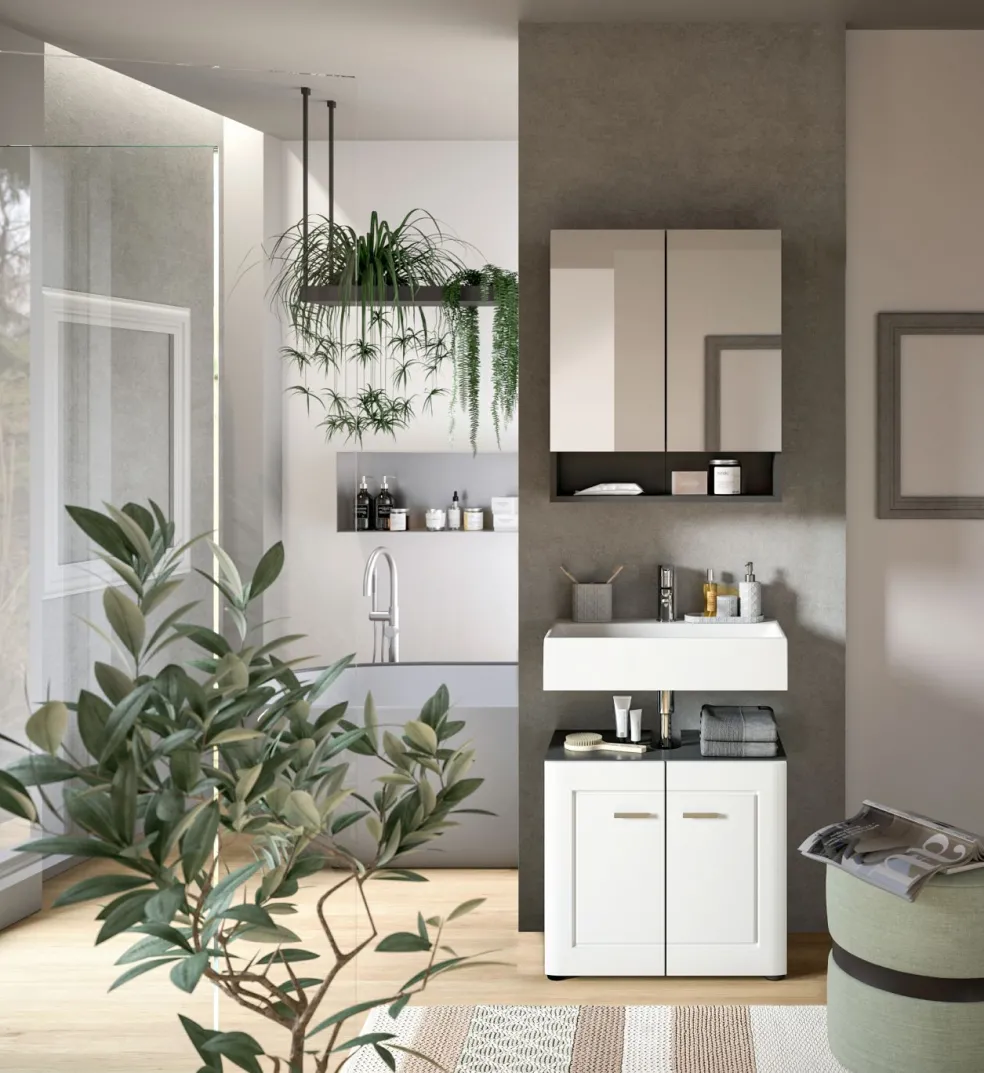 1 meuble sous lavabo avec 2 portes et 1 tablette amovible