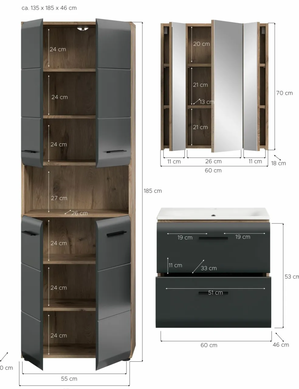 | Meuble sous vasque avec vasquemit Waschbecken | 60 | 55 | 46 |