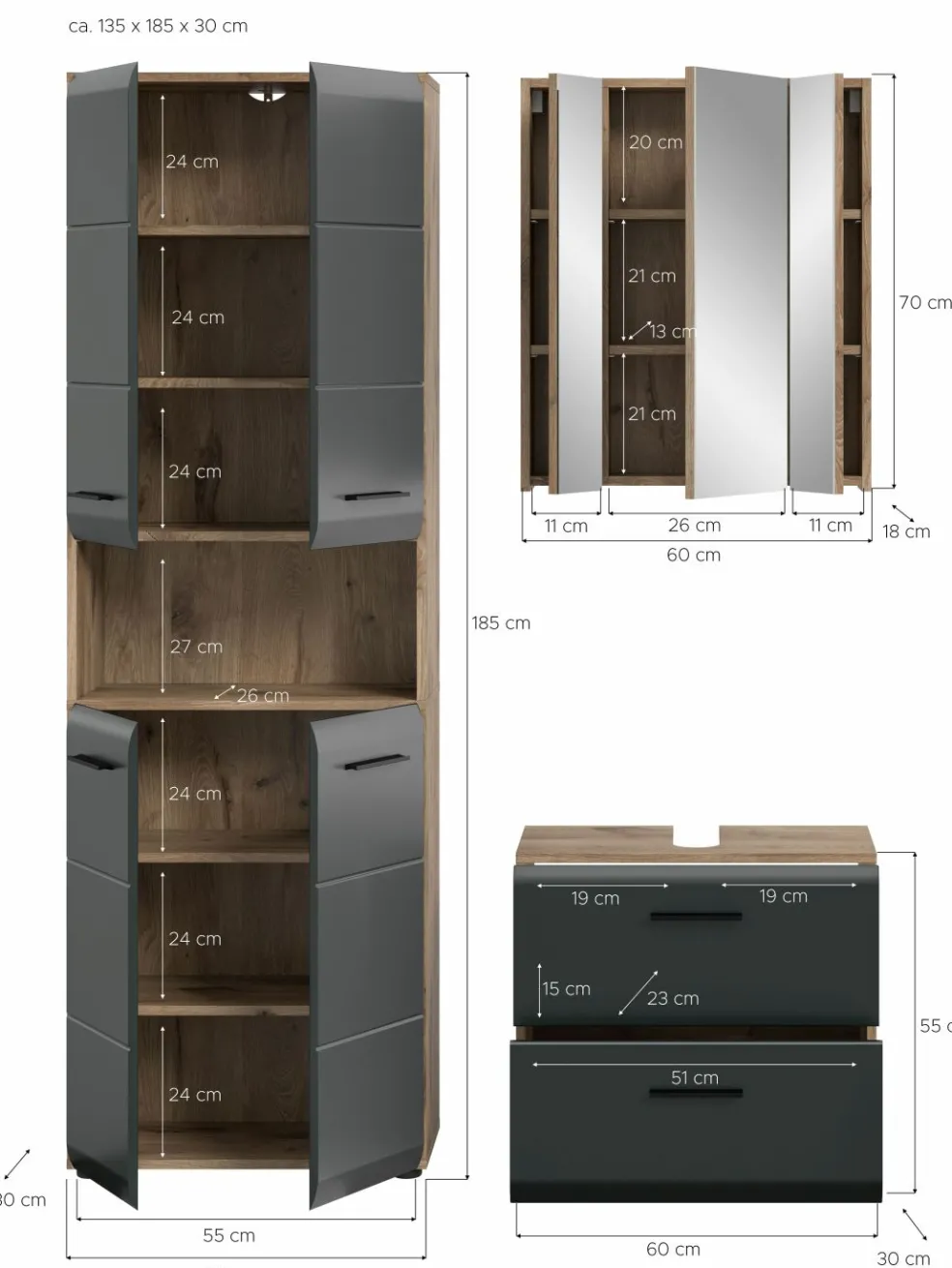 | Armoire de salle de bains | 60 | 185 | 30 |