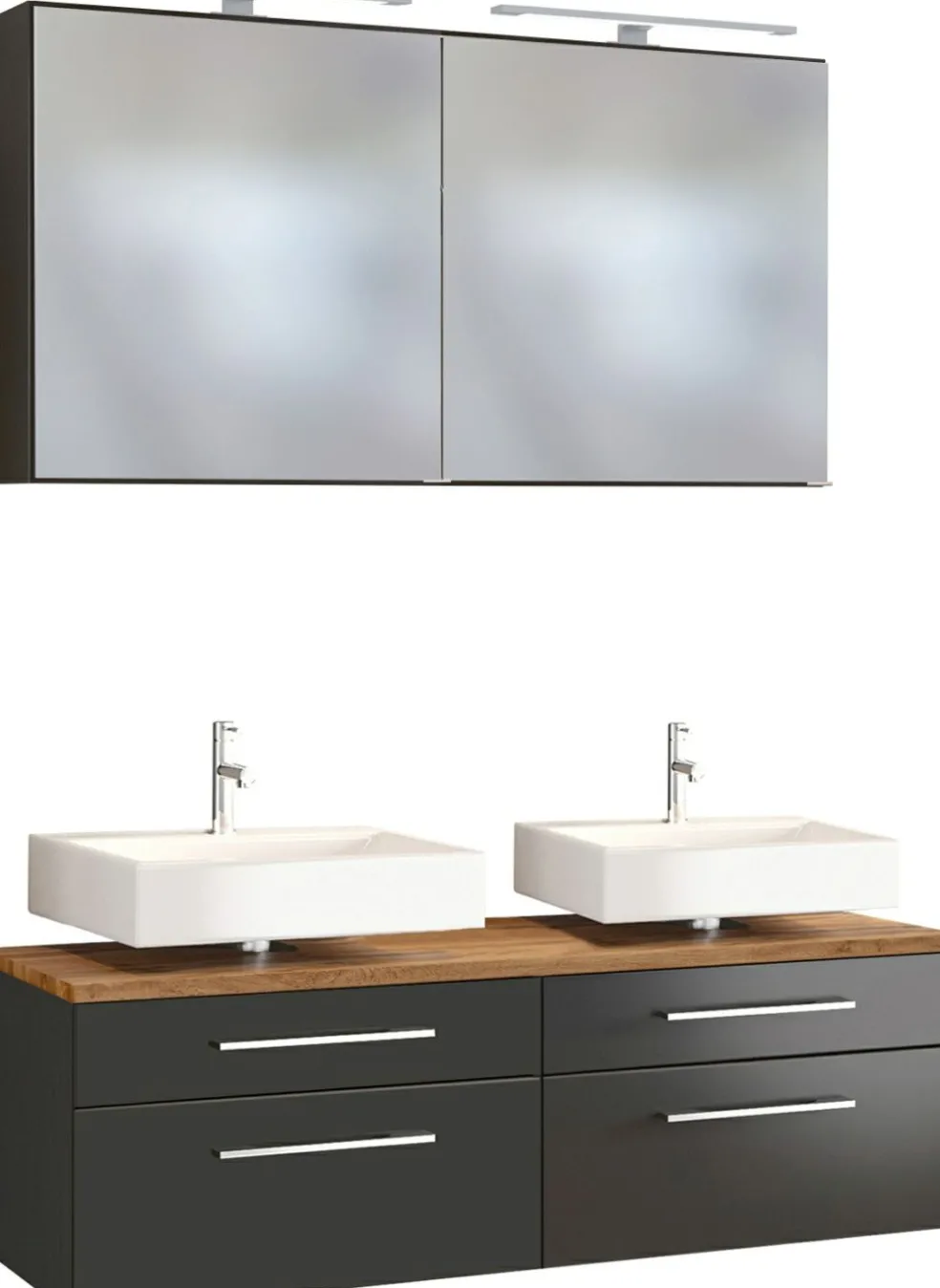 1 meuble sous vasque avec 2 tiroirs bas et 2 tiroirs hauts avec fermeture amortie, incl. découpe siphon