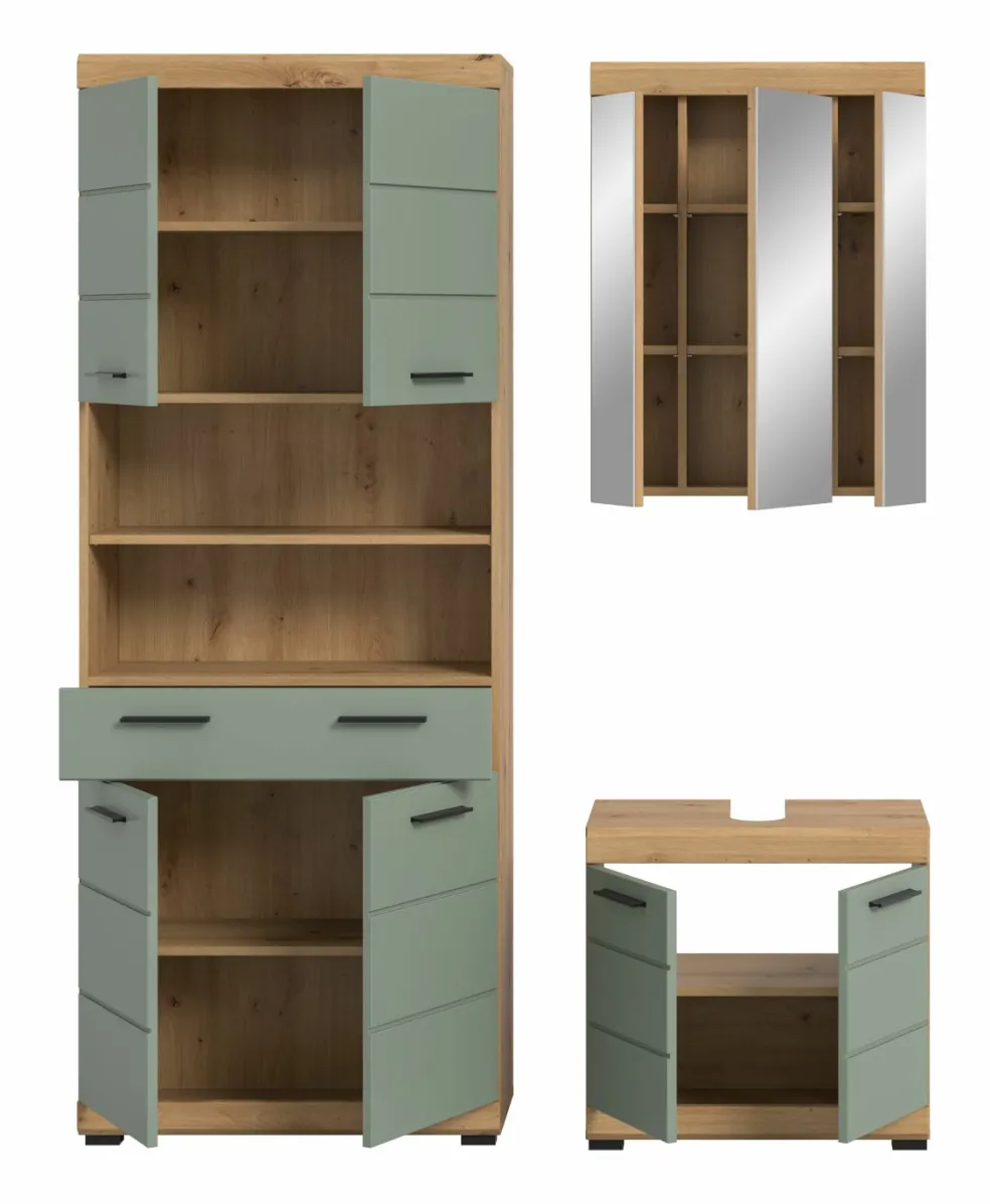 1 armoire de toilette avec 3 portes et 6 tablettes amovibles