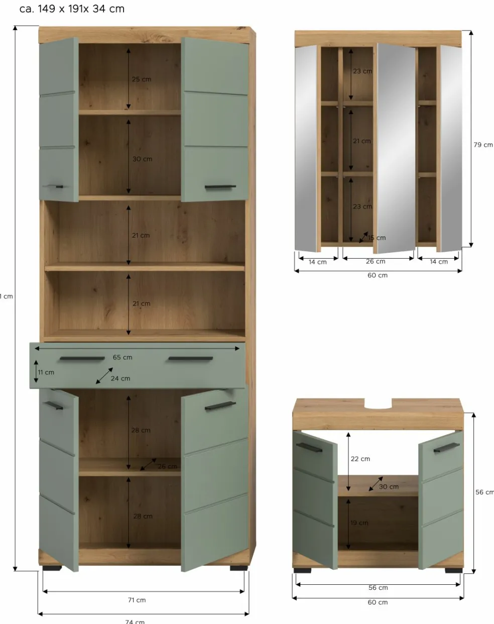 | Armoire de salle de bains | 74 | 191 | 31 |