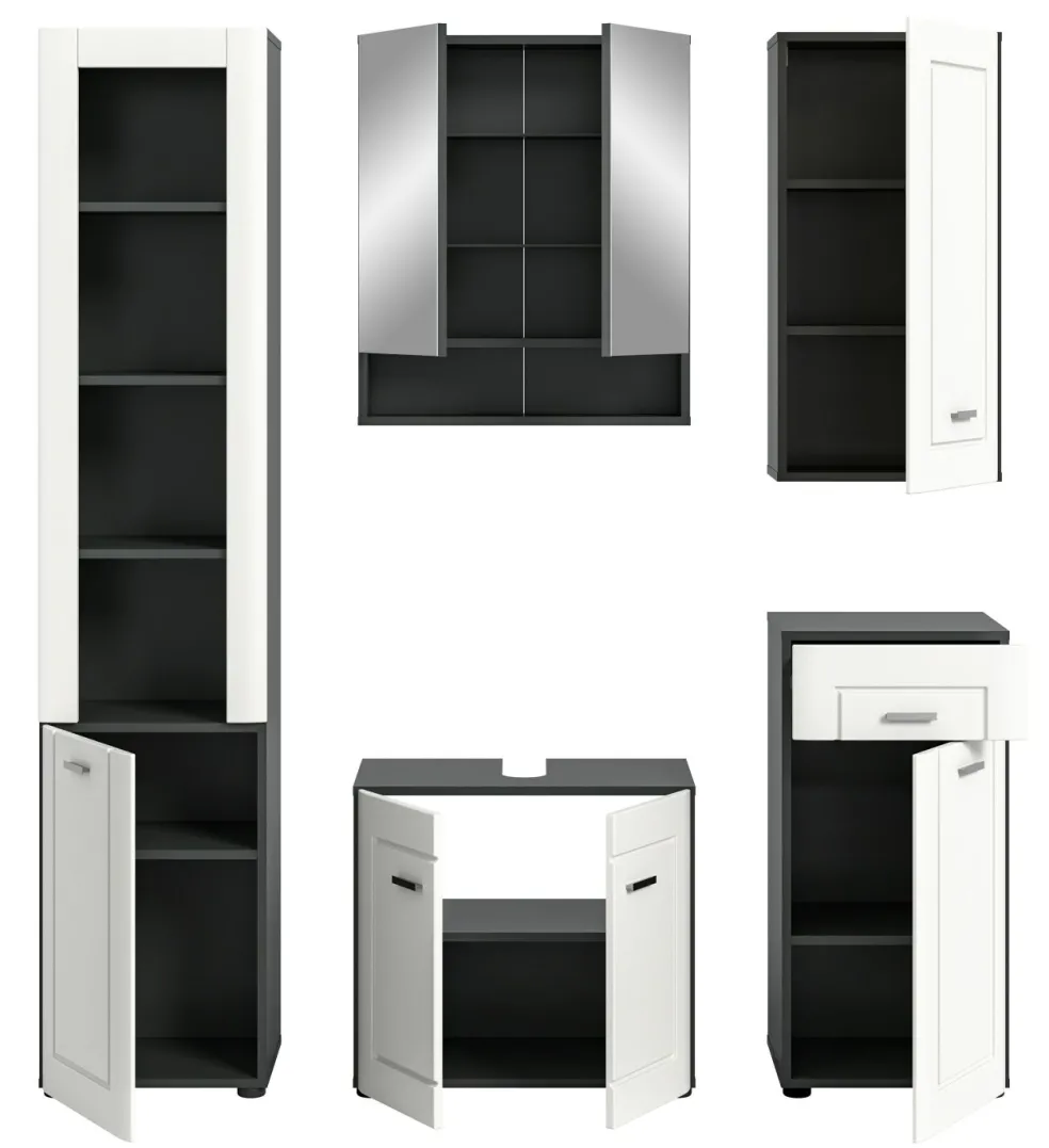 1 armoire de toilette avec 2 portes miroir, 2 tablettes amovibles et 1 casier ouvert