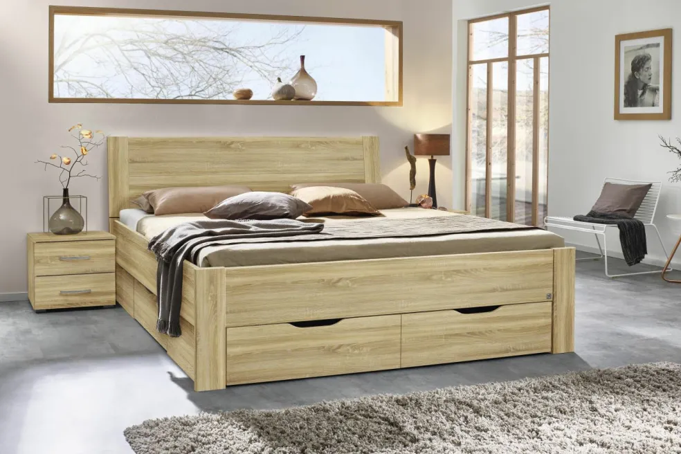sans décoration/ sommiers à lattes / matelas / tiroirs de socle / chevet