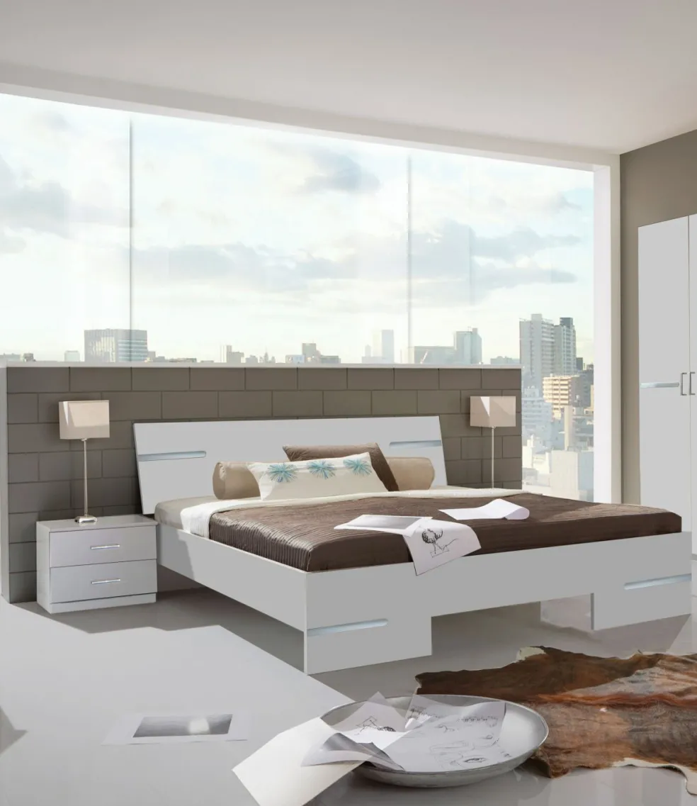 Caisson et façade : ton blanc avec lattes ton chrome brillant