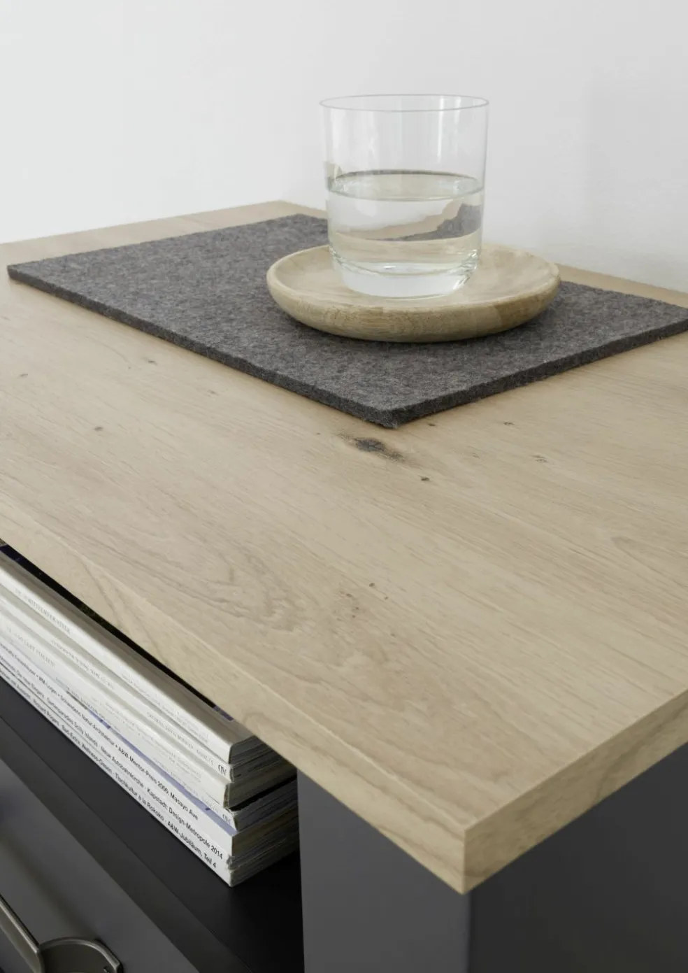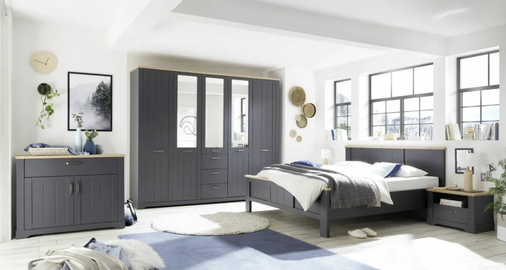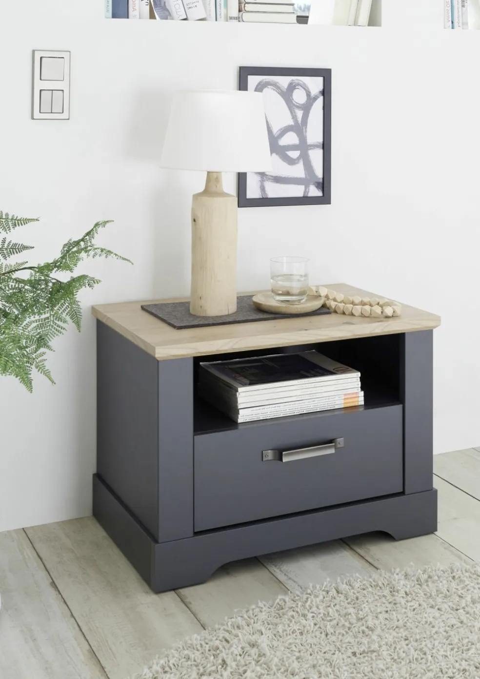 Caisson : ton graphite avec contrastes décor chêne Artisan