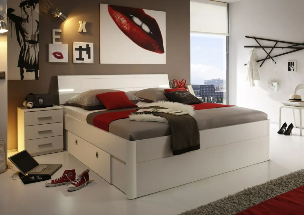 1 cadre de lit avec tête de lit et 2 tiroirs