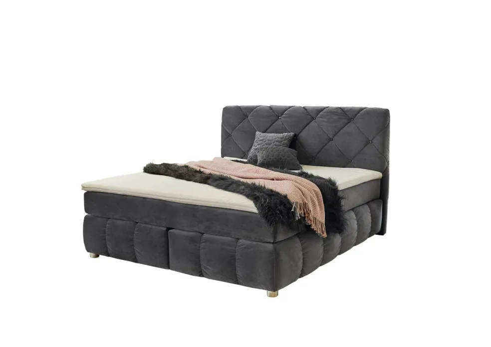 Ce lit boxspring d’aspect original se compose à la base d’un caisson pourvu d’un rembourrage à ressorts bonnell. Le garnissage à ressorts bonnell est utilisé comme suspension. Sur le caisson se trouve deux matelas de qualité 7 zones à ressorts ensachés en forme de tonneaux dans un revêtement tandem qui empêche les matelas de glisser. La double suspension ainsi formée crée un confort unique avec une adaptation optimale à la morphologie du dormeur et une réduction de la pression. Le matelas en mousse haute résilience vient parfaire cette expérience de couchage unique. Ce système boxspring garantit un confort de sommeil extraordinaire grâce à son excellentsystème individuel de suspension double.