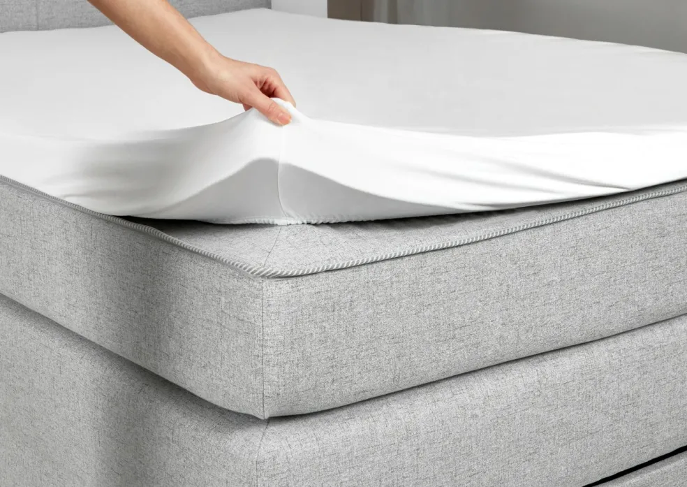 Ayant l’aspect d’un surmatelas séparé sans que celui-ci ne puisse glisser. Il est ainsi possible de fixer un drap housse sans que les faces du matelas ne soient recouvertes.