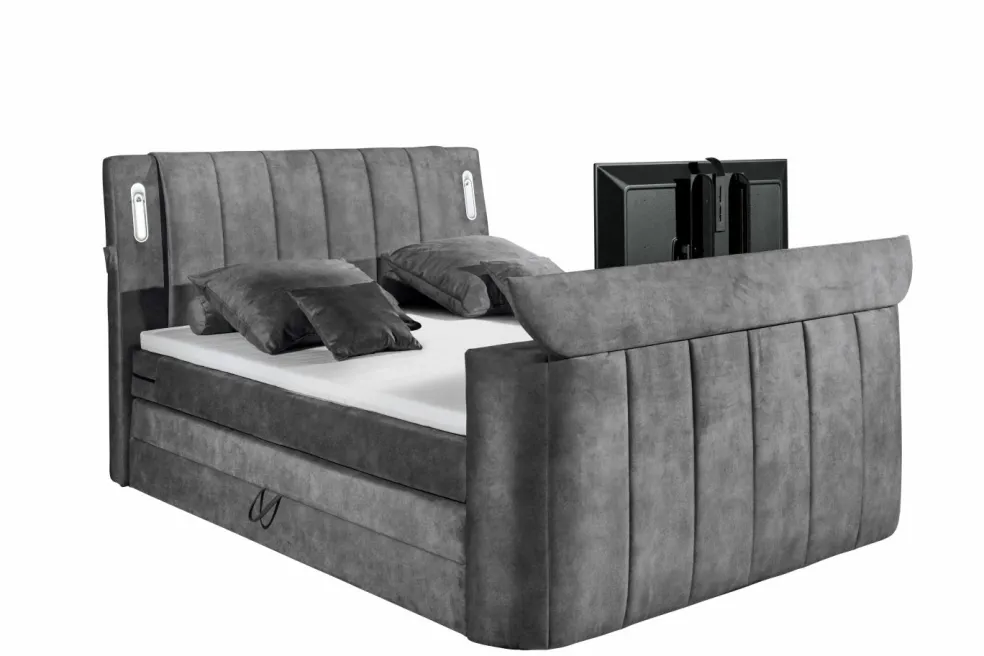 1 pied de lit matelassé avec espace de rangement pour téléviseur jusqu’à 40 pouces