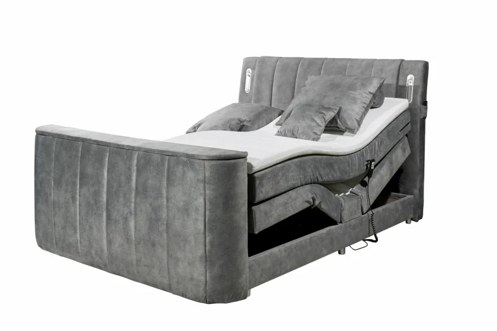 1 pied de lit matelassé avec espace de rangement pour téléviseur jusqu’à 40 pouces (fixation TV motorisée)