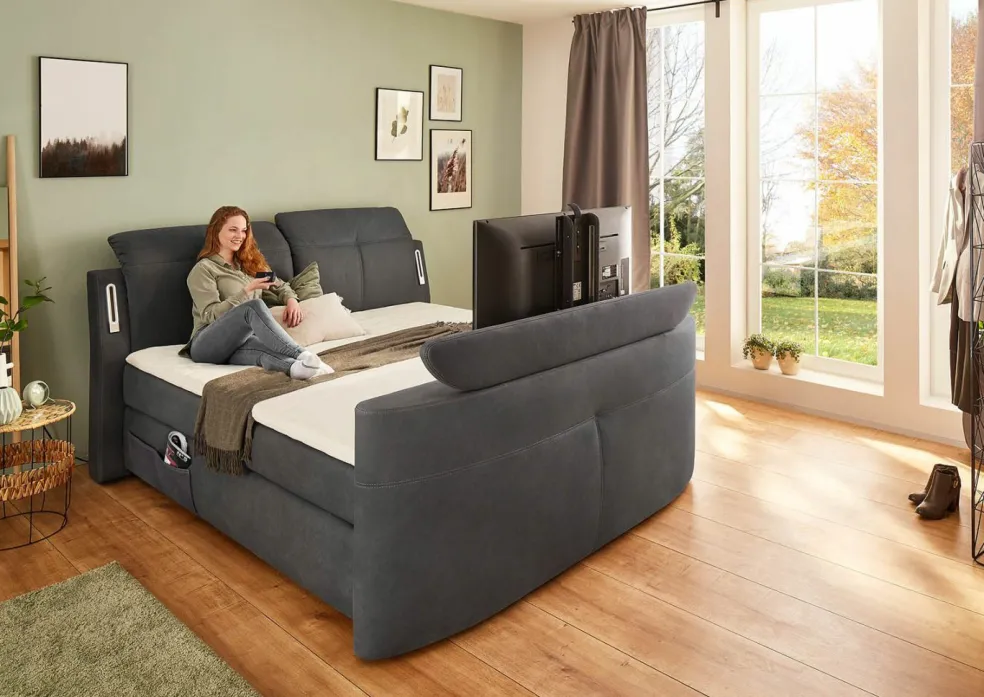 Le point fort de ce lit est la possibilité de fixer un téléviseur au niveau de la tête de lit pouvant être relevé ou rabaissé à l’aide d’une télécommande.