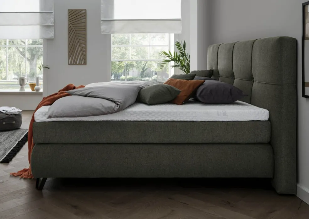 2 caissons avec cadre en épicéa et garnissage intégré en ressorts ensachés, avec couche de mousse arrondie, revêtement en tissu d’ameublement et coutil double