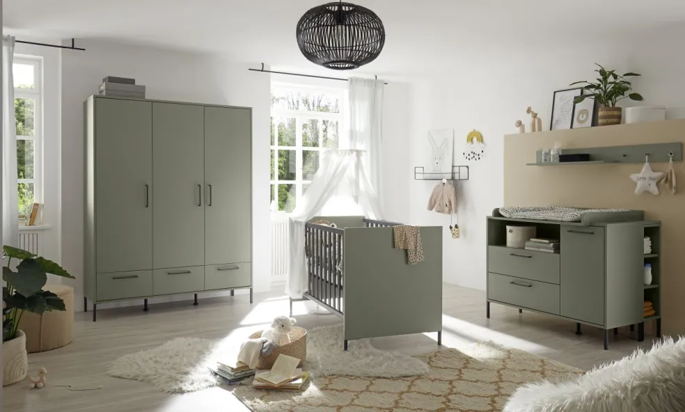 Vernis vert pin mat et barreaux en vernis anthracite mat