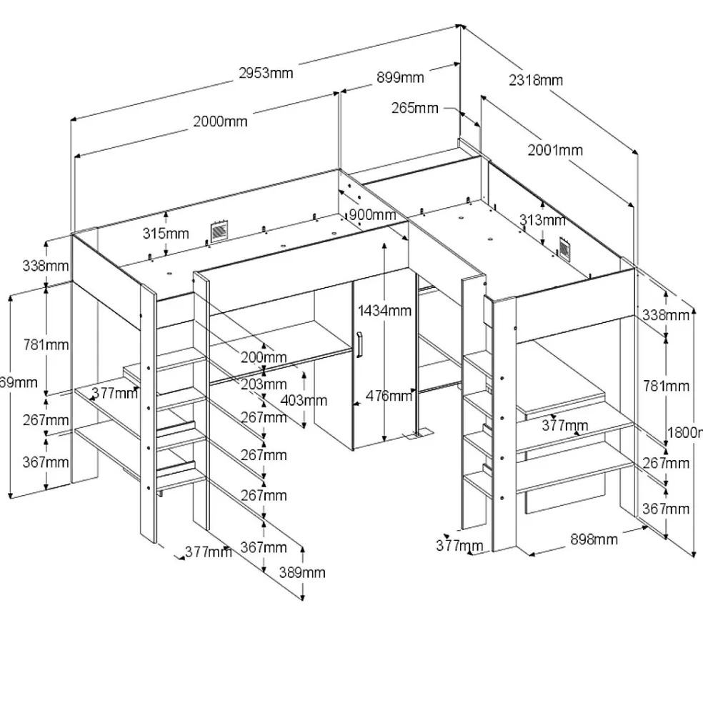 1 lit mezzanine d’angle 2 couchages