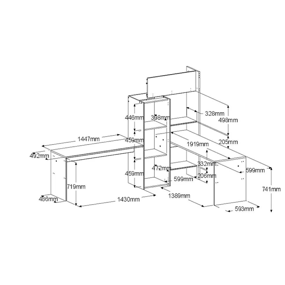 Sous chaque couchage: 1 bureau intégré avec surfaces de rangement de chaque côté