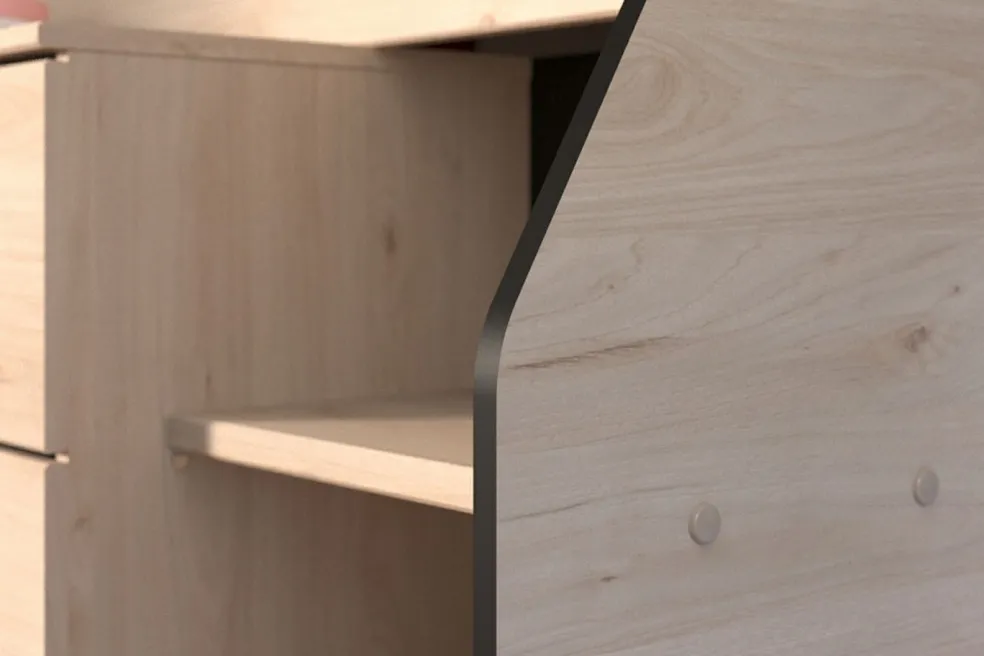 Caisson et façade : 32 ton noir / 153 décor chêne Jackson