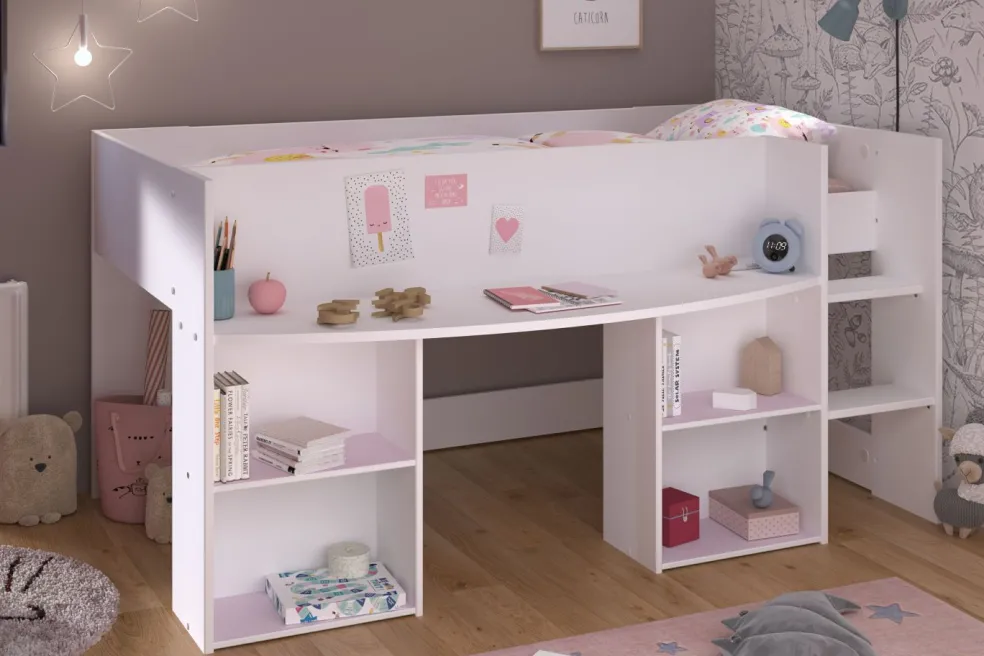 Avec tablettes réversibles ton rose / gris