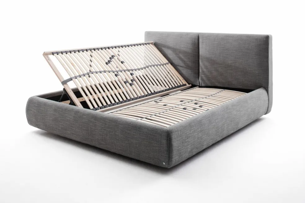 inclus : 2 coffres de lit avec multi-perforations et sommiers à lattes multiplis avec ouverture latérale