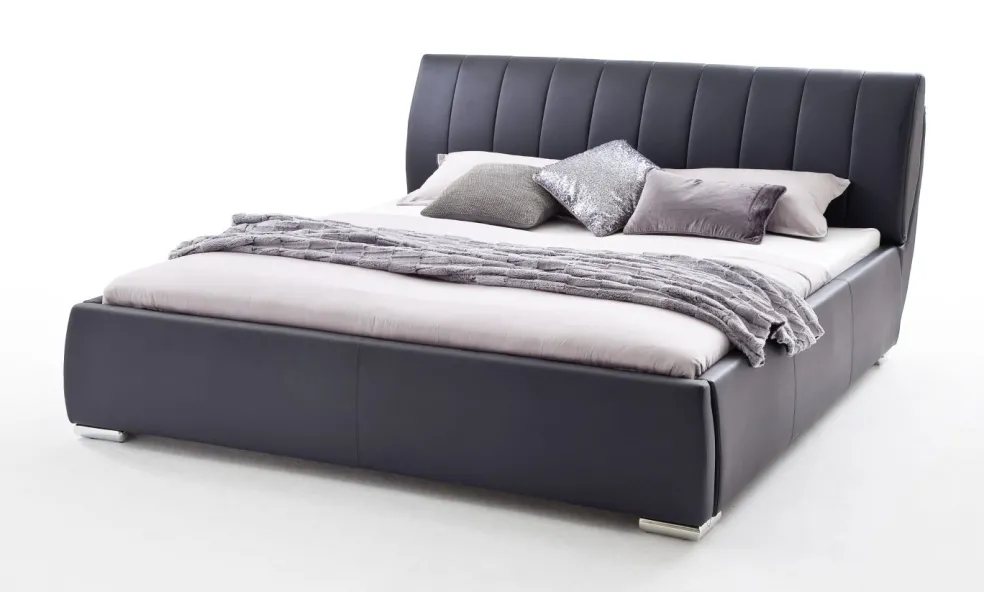 Lit rembourré ton noir avec revêtement en cuir synthétique : face avant 100% polyuréthane, dos : 50% coton, 50% polyester