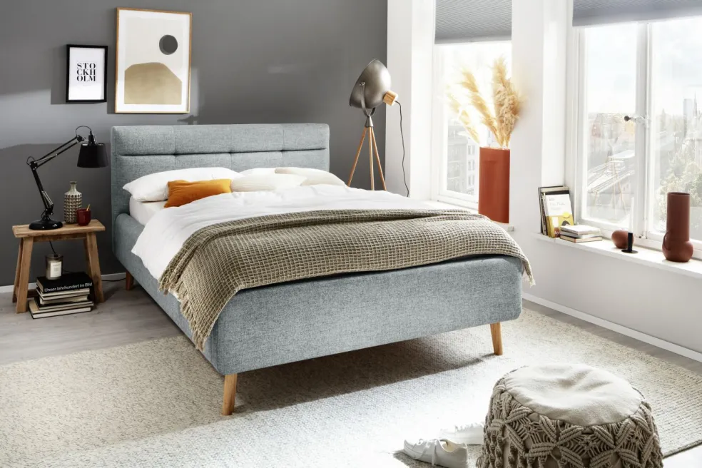 Inclus: coffre de lit avec aération et sommiers à lattes en bois multiplis avec ouverture latérale