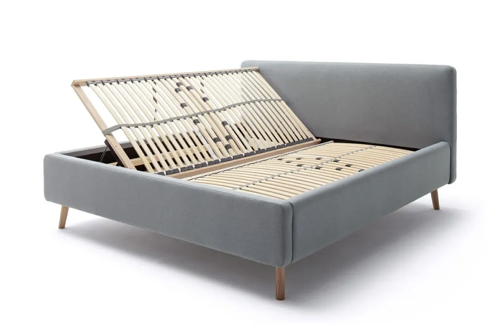 2 sommiers à lattes multiplis relevables sur les côtés avec 28 lattes chacun, fixes avec réglage du degré de dureté