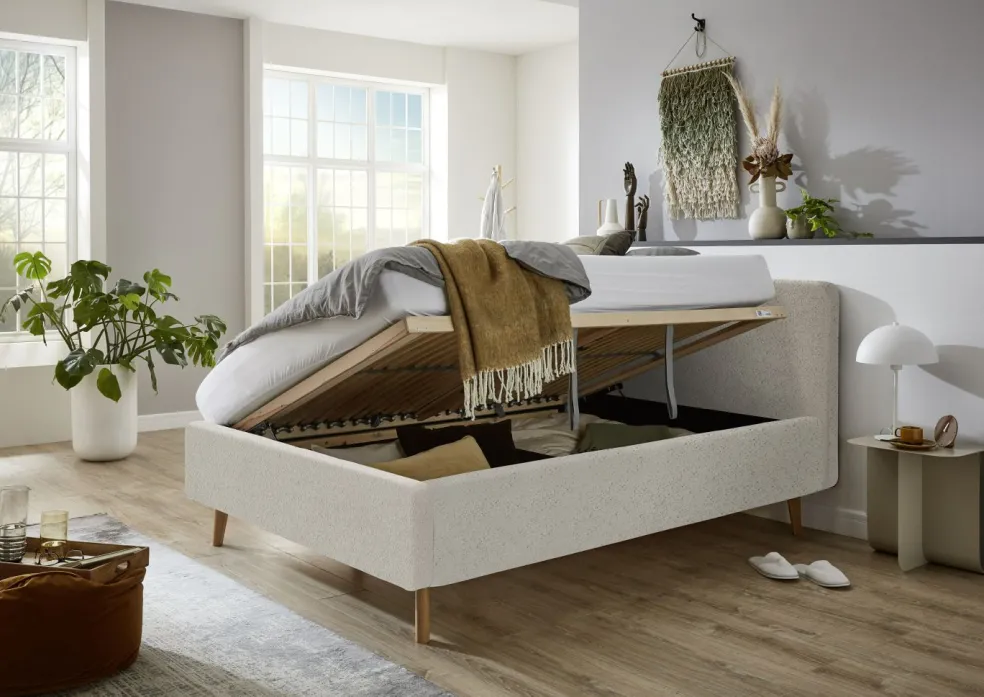inclus : un coffrede lit avec aération et sommierà lattes en bois multiplis avec ouverture latérale
