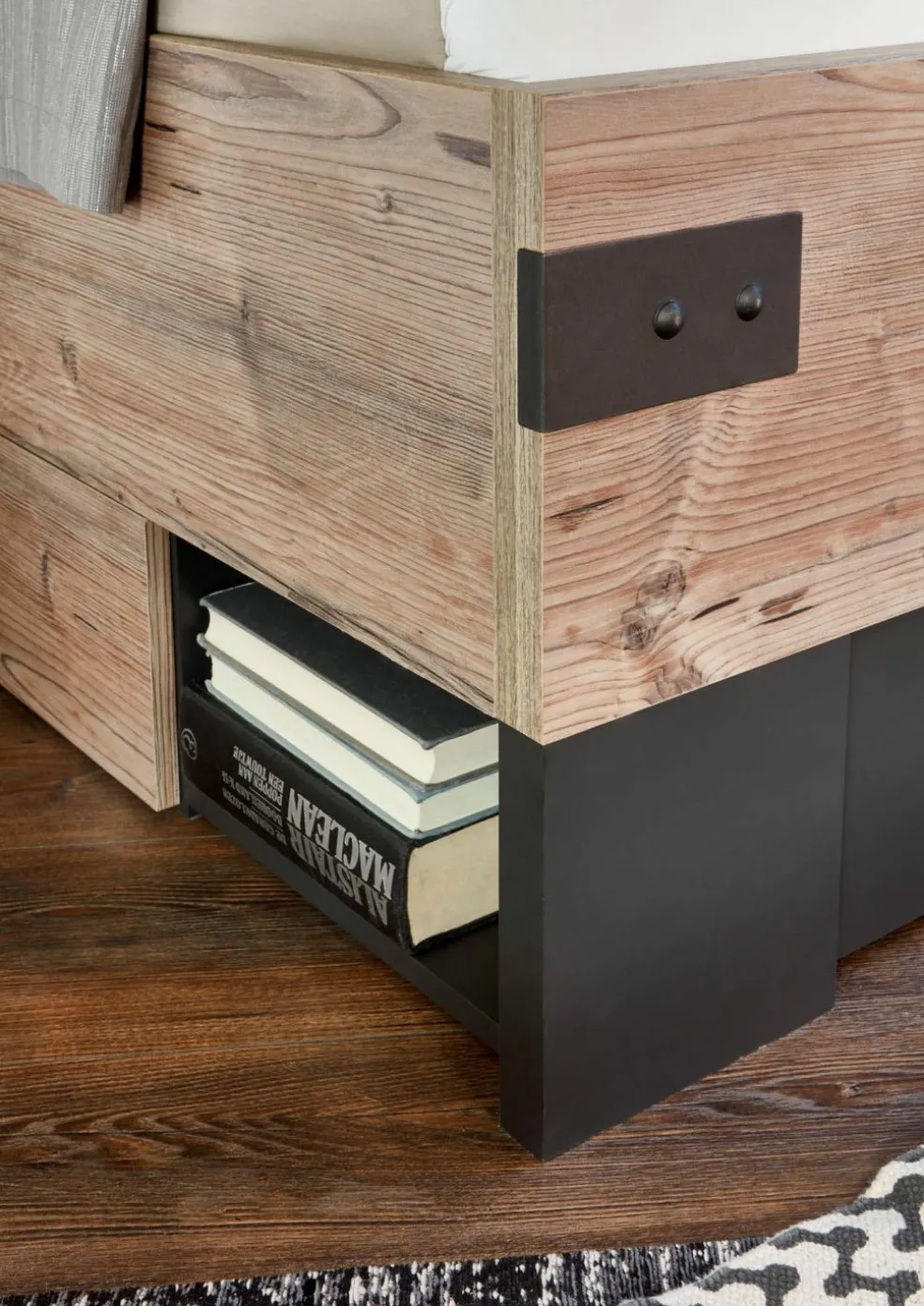1 cadre de lit avec 2 tiroirs de lit et 1 casier avec abattant au pied du lit