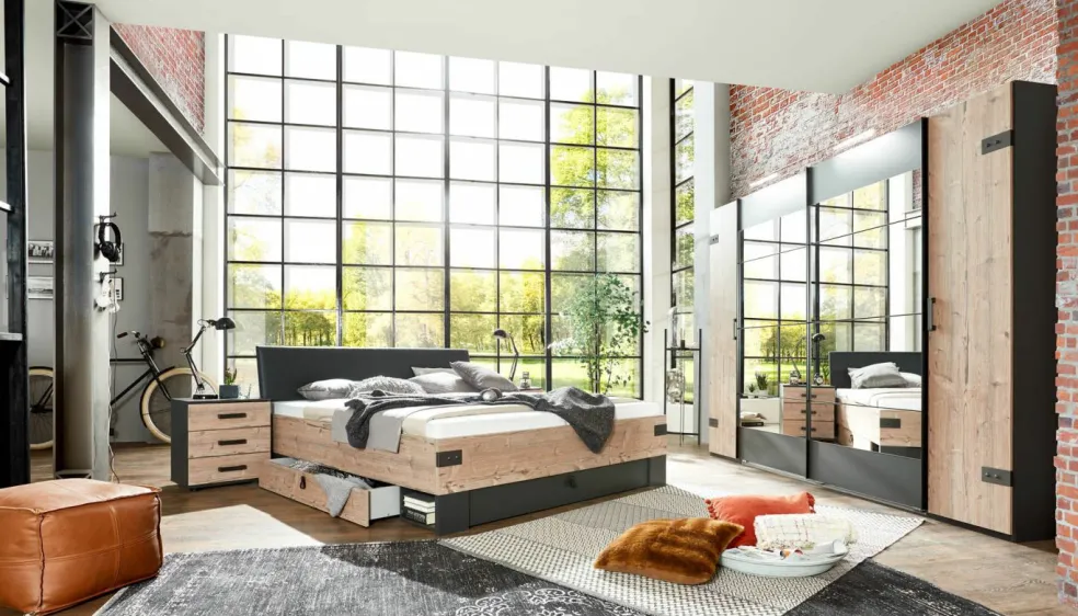 sans décoration / chevets / sommiers à lattes / matelas / armoire