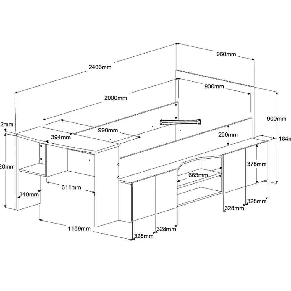| Type de lit: | Lit avec rangements, Lit mezzanine, Lit simple | ||
