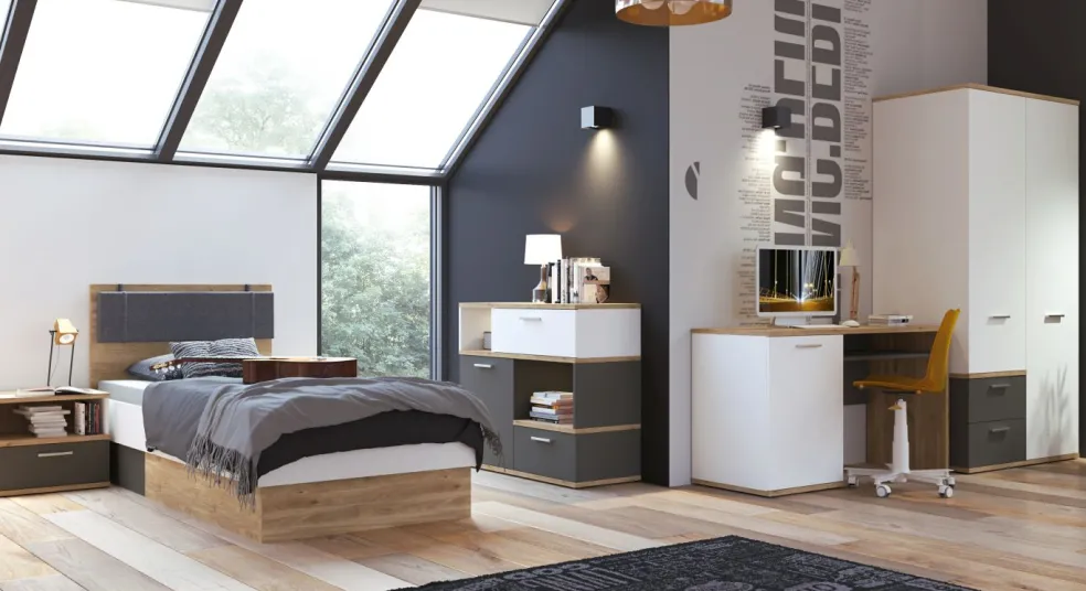 Caisson: décor chêne Honey Castello / gris graphite / blanc alpin