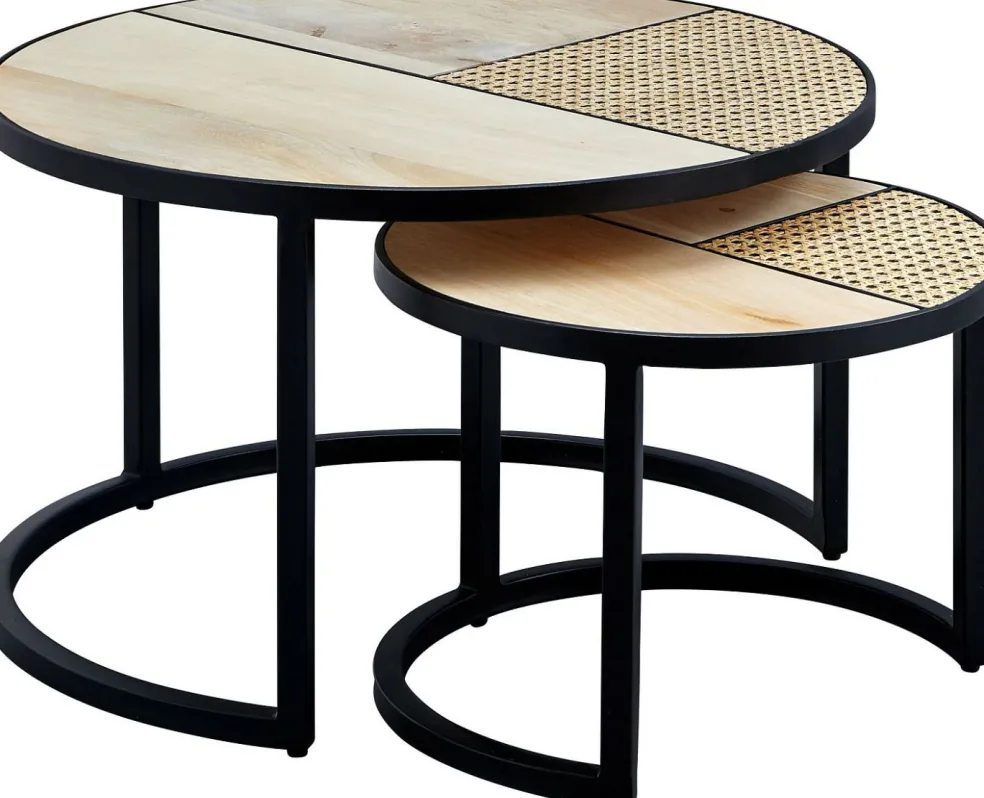 Plateau de table :cannage en rotin naturel / bois de manguier massif (Inde) avec couche de vernis transparent