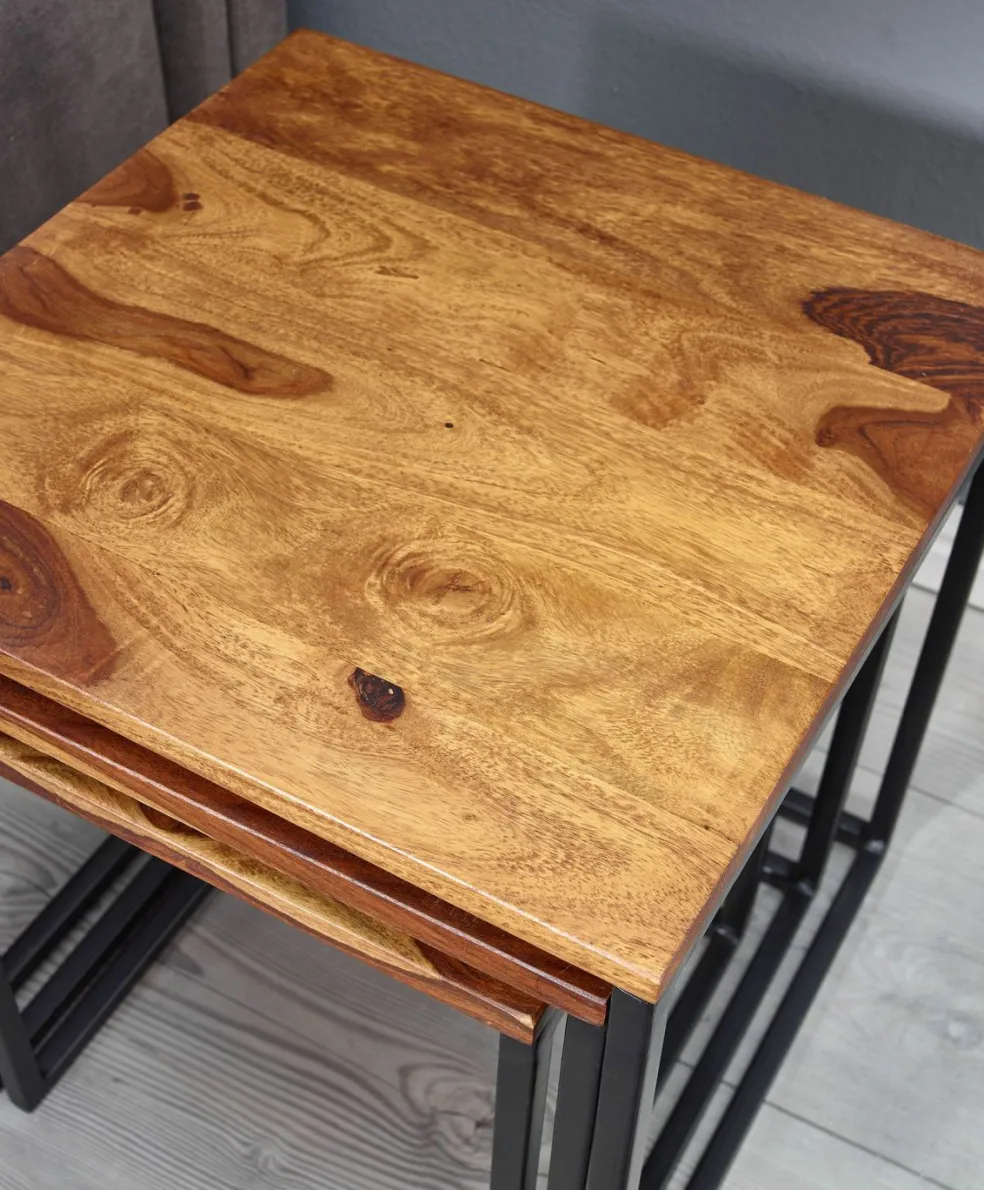 Plateaux : bois de sheesham massif (Inde) avec couche de vernis transparent