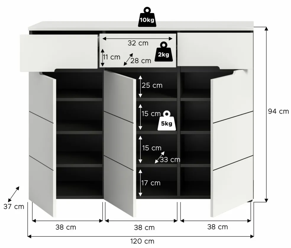 | Meuble à chaussures | 120 | 94 | 37 |