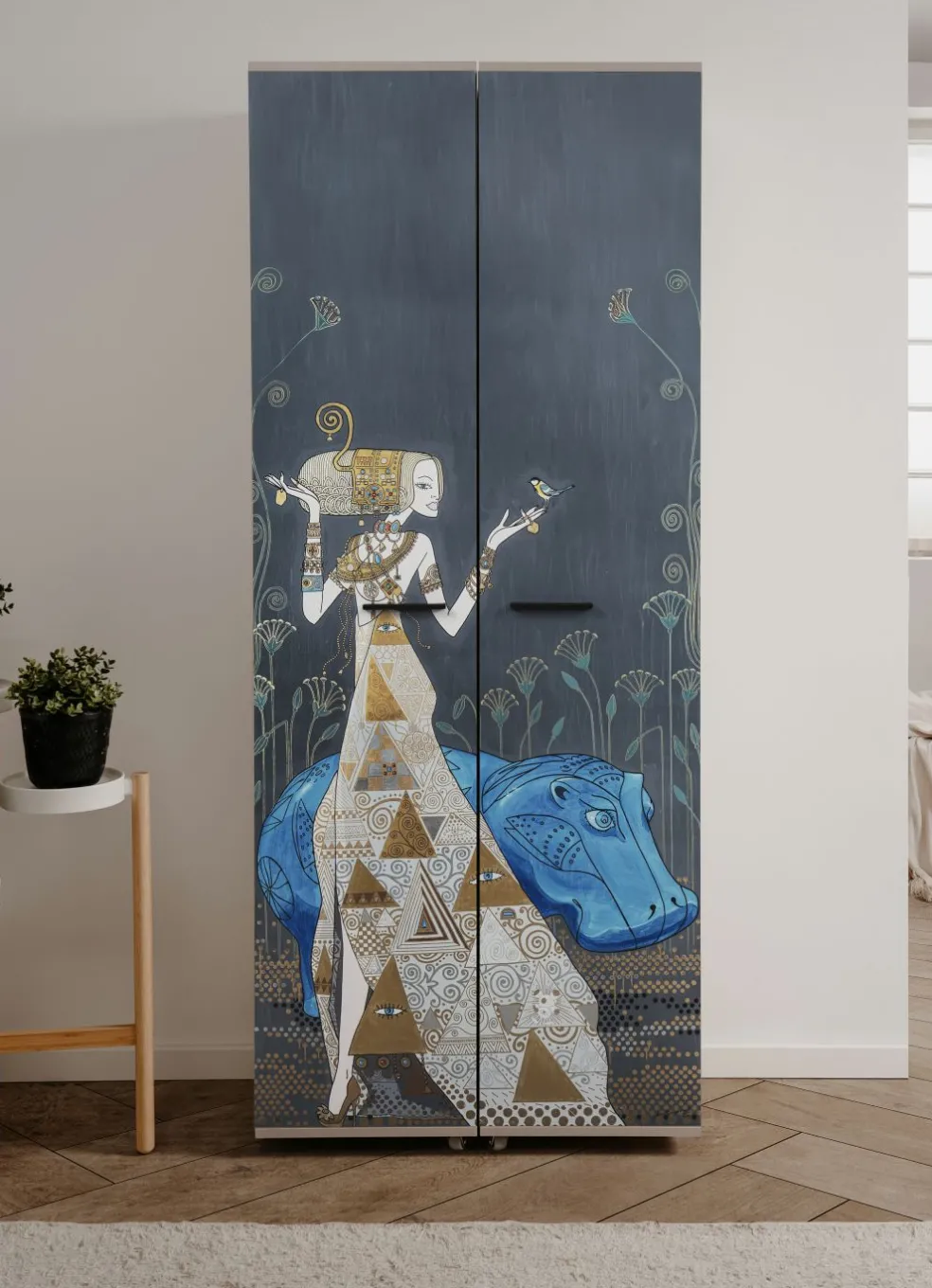 Caisson et façade: beige avec portes imprimées (design: Mauro Bergonzoli)